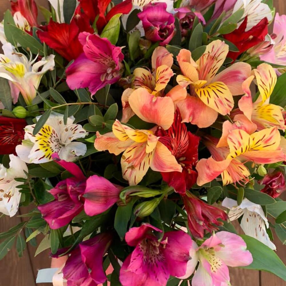 Альстромерии в шляпной коробке