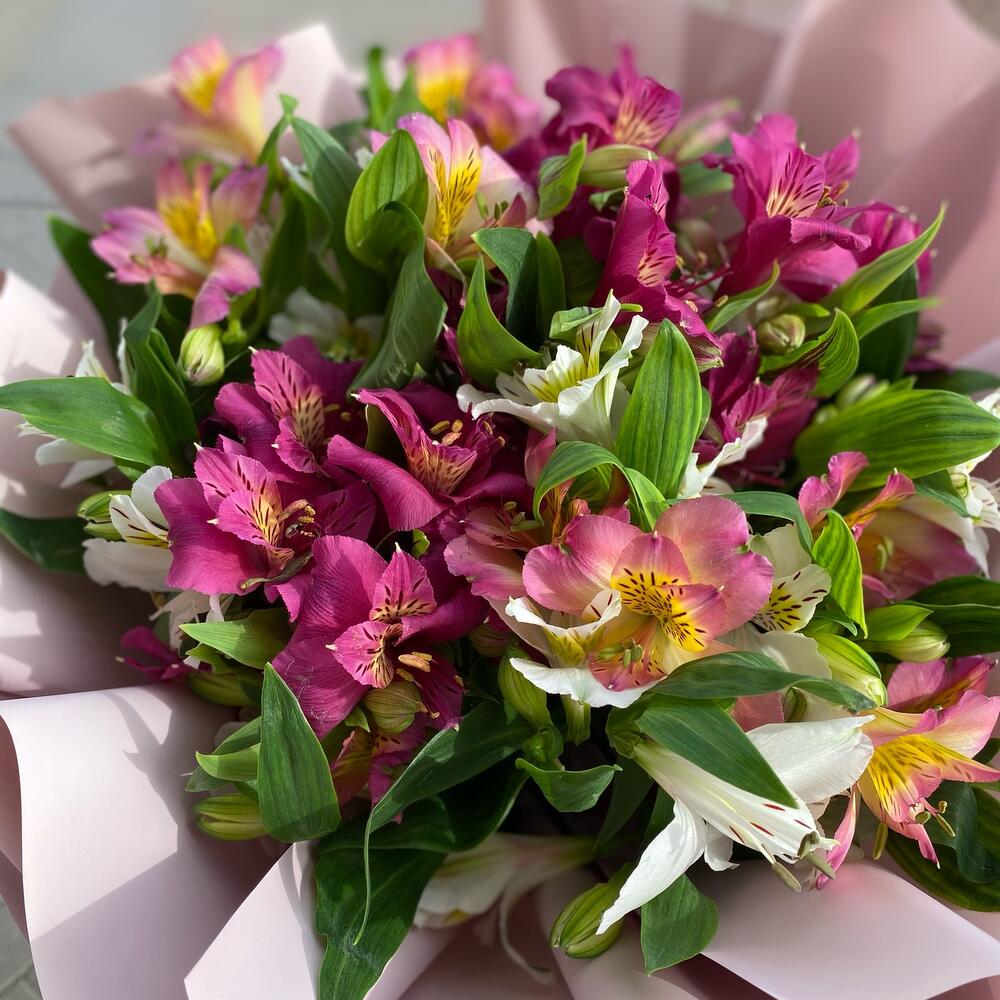 Альстромерия – 7 шт.бумага дизайнерская – 1 шт.Лента – 1 шт.
