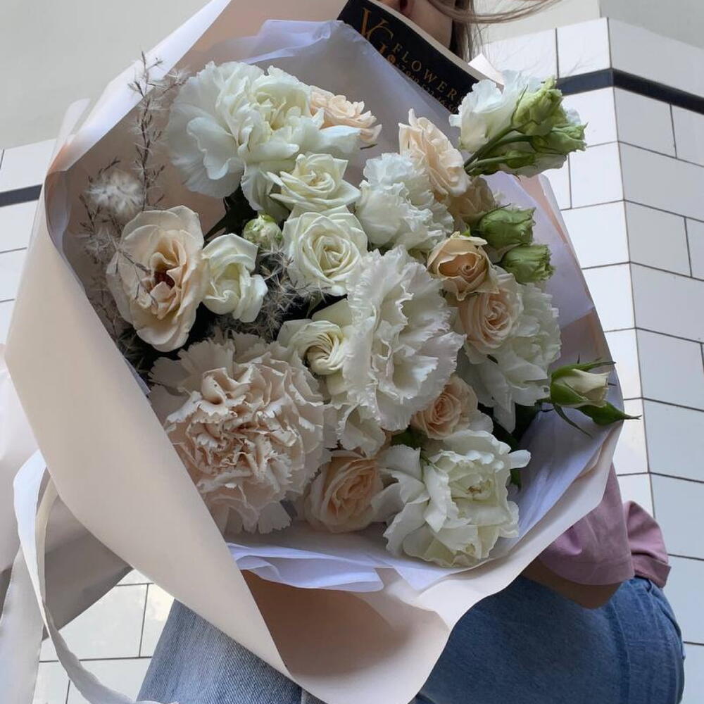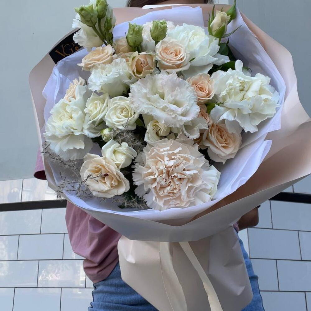 Гвоздики, Кустовые розы, Пионовидные розы, Розы
