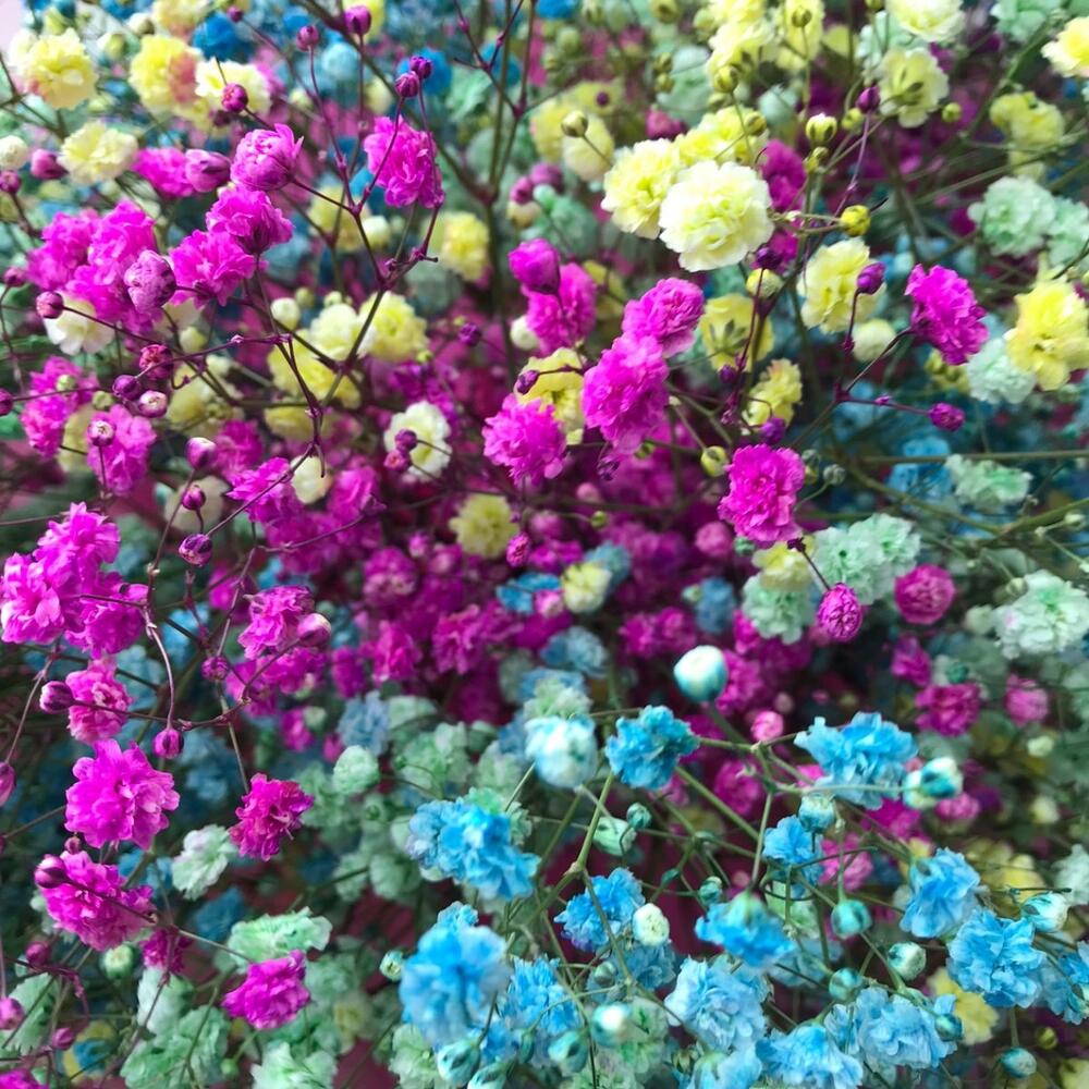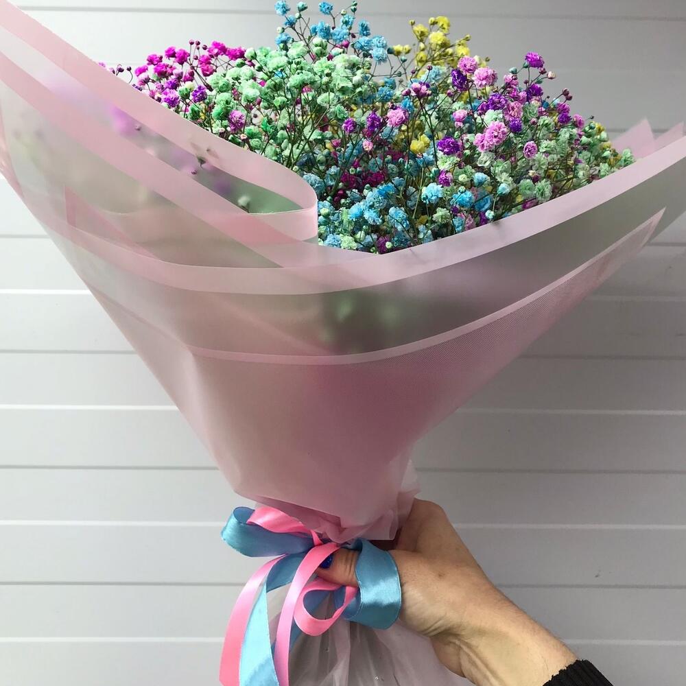 гипсофила радужная – 11 шт.Упаковка дизайнерская – 2 шт.Лента атласная – 1 шт.