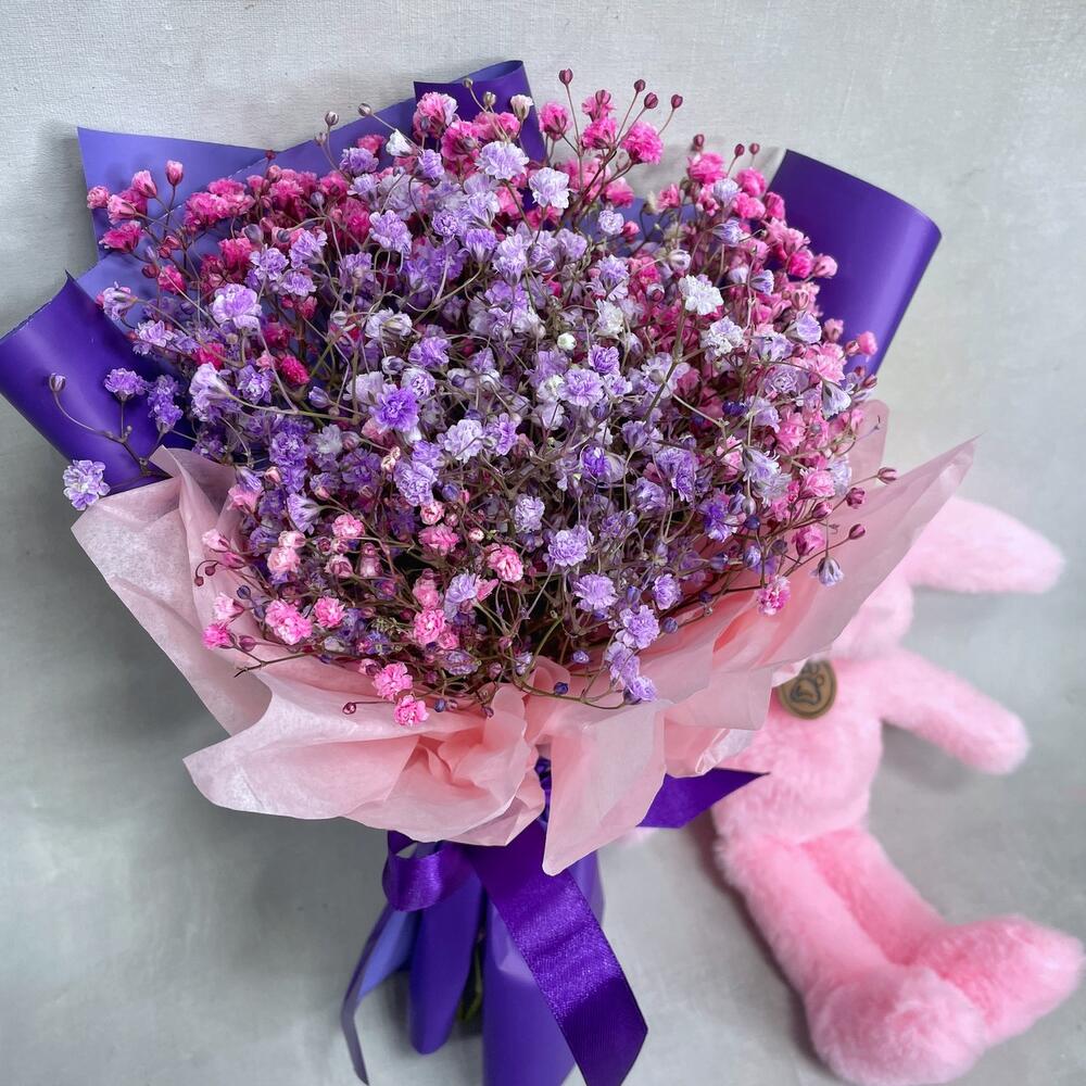 Гипсофила – 3 шт.Упаковка – 1 шт.игрушка зайчонок lapkin – 1 шт.Пакет крафт – 1 шт.