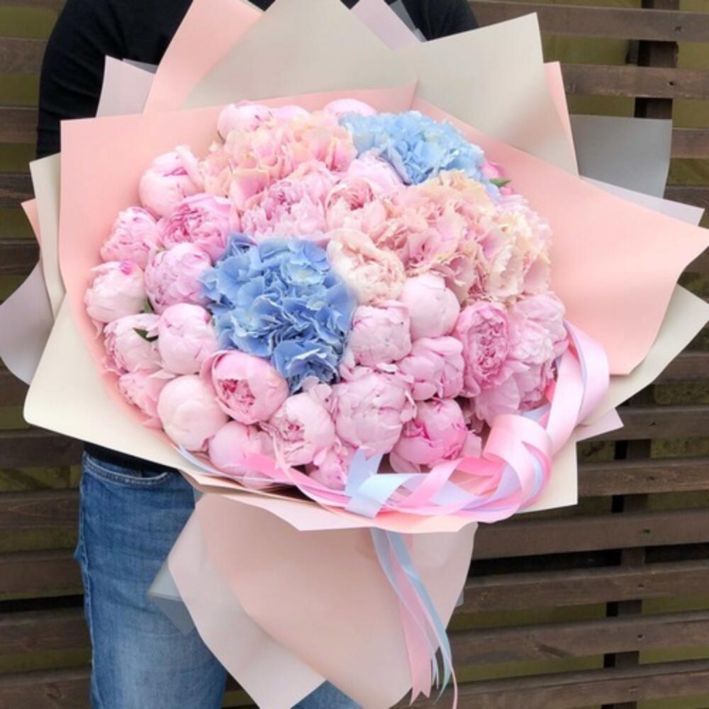 Гвоздики, Гортензии, Кустовые розы, Пионовидные розы, Розы