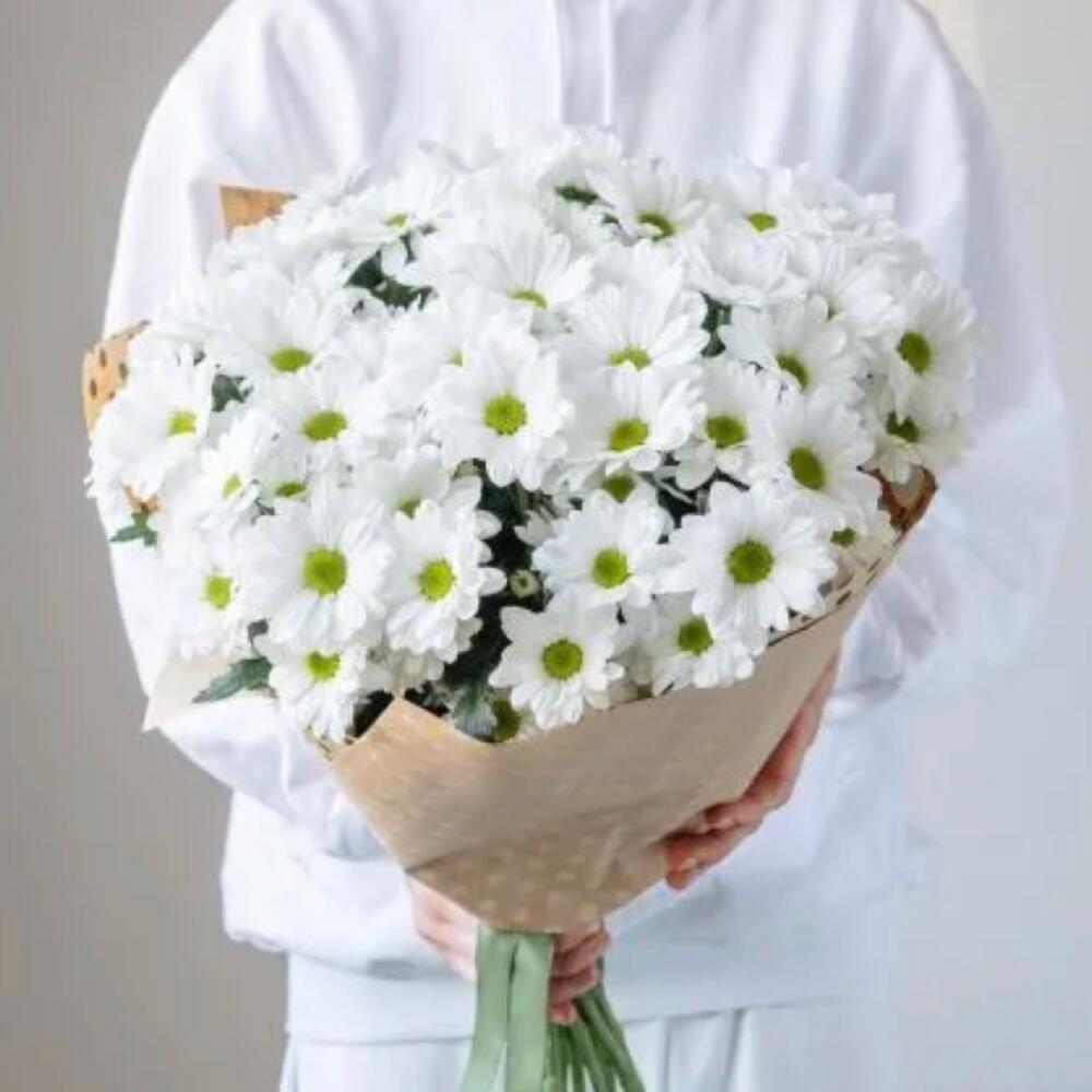 15 кустовых хризантем с зеленью