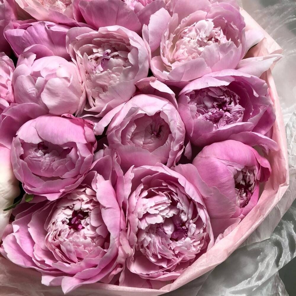Лента атласная – 1 шт.Пион Сара Бернар – 19 шт.Упаковка дизайнерская – 2 шт.