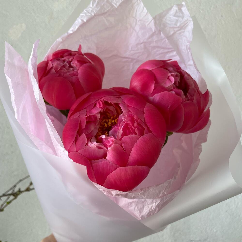 Букет из 3х пионов. Сорт самый стойкий из всех пинов, цветок меняет цвет – волшебно!Самый желанный цветок всех девушек 100500% попадание.Состав комплекта :букет;мини-открытка;транспортировочная упаковка;инструкция по уходу.Повторы могут отличаться от фото, потому … Показать ещёчто цветы живой материал, их форма и оттенки изменчивы, потому точь в точь не всегда получается, так же нам важно, чтобы каждый букет был особенным и индивидуальным. Однако, мы обещаем сохранить состав максимально, выдержать цвет, форму и общее настроение букета.