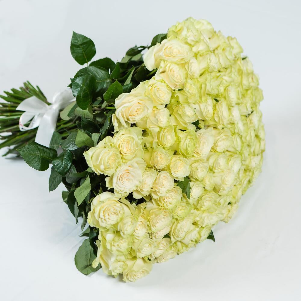 Роза мондиаль 60 см – 101 шт.Лента атласная – 1 шт.Пленка прозрачная – 1 шт.