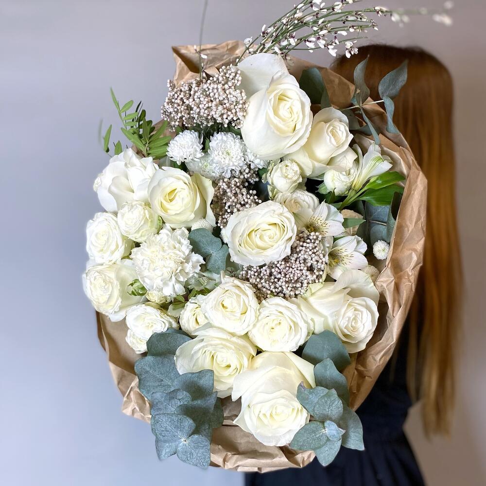 АННЕТ премиум букет из белых пионов, диантусов и альстрамерий