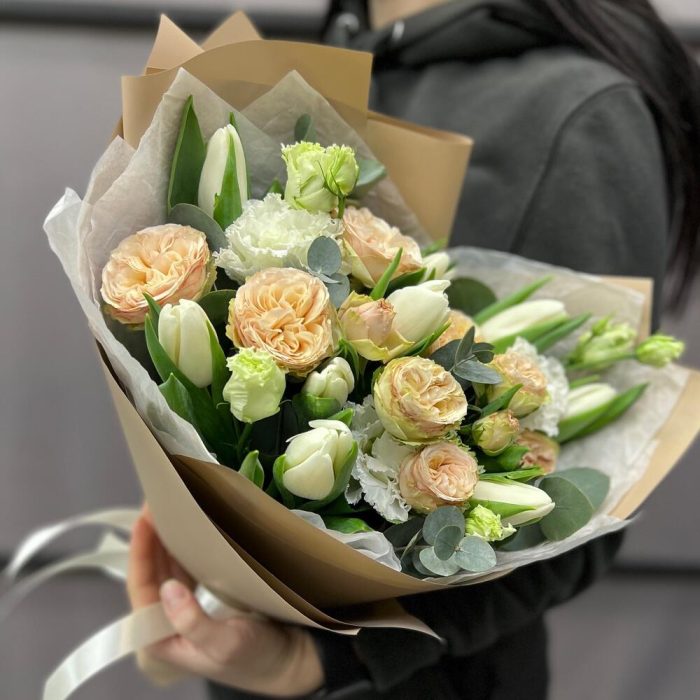 Категорий: Кустовые розы, Лизиантусы, Пионовидные розы, Розы, Тюльпаны