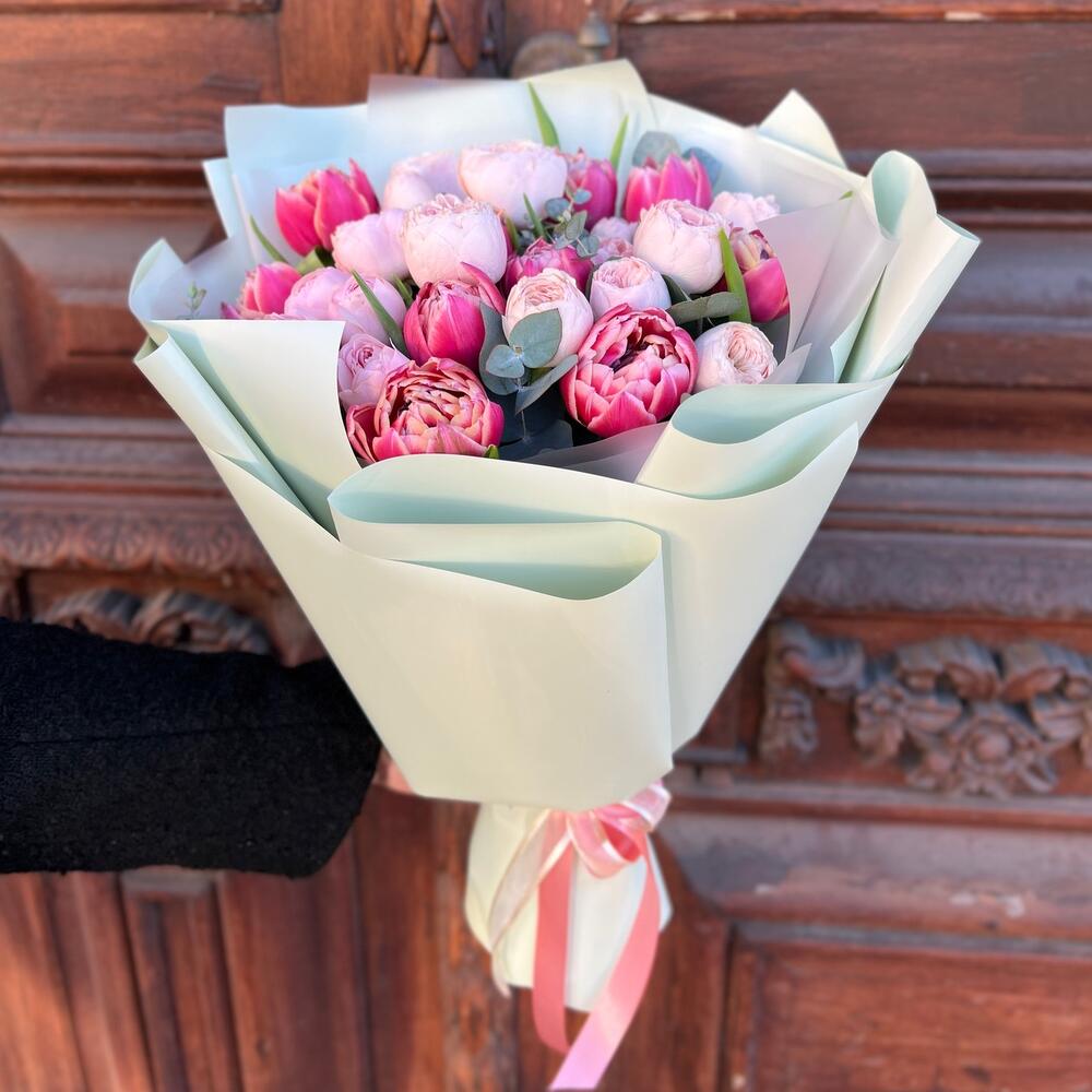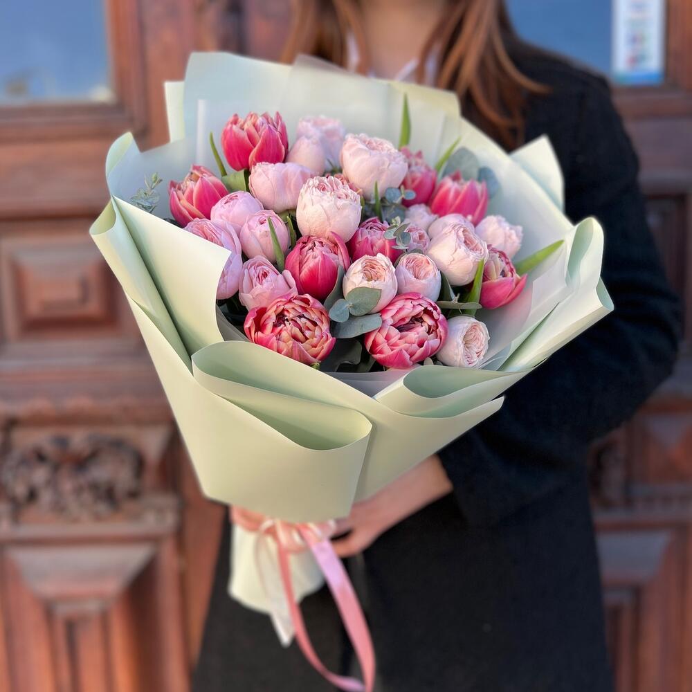 Категории: Пионовидные розы, Розы, Тюльпаны