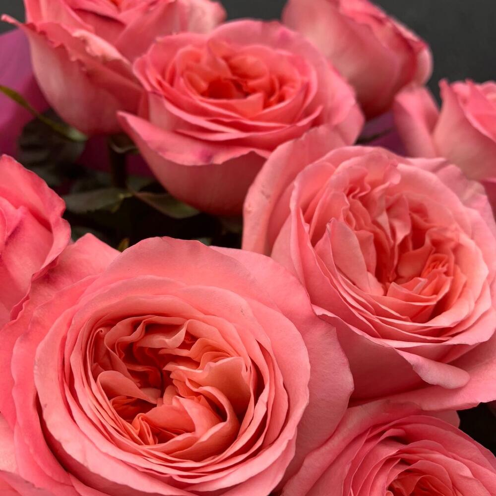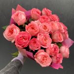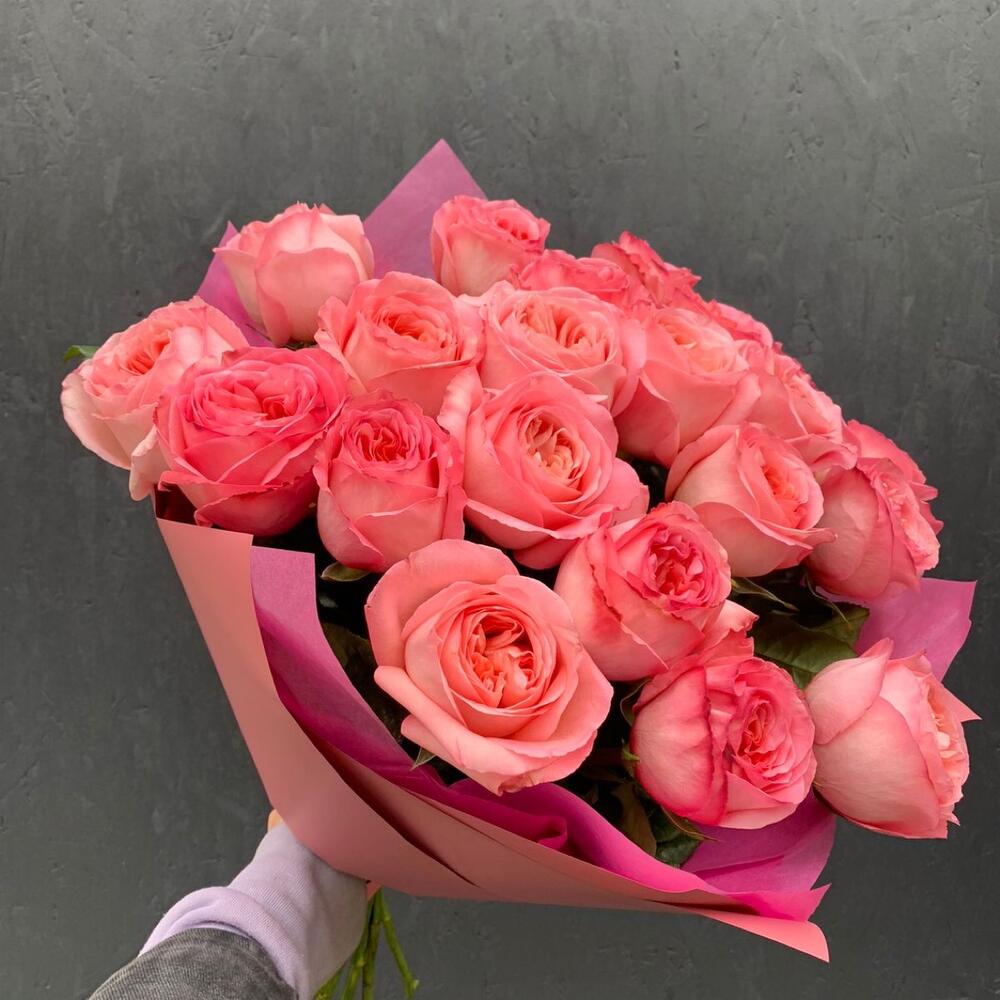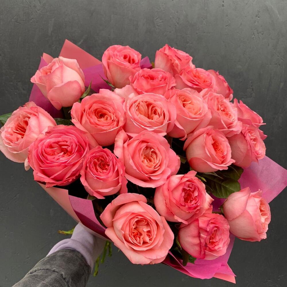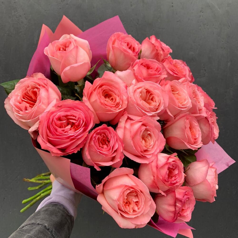 пинк экспрешн роза пионовидная – 21 шт.Упаковка дизайнерская – 2 шт.Лента атласная – 1 шт.