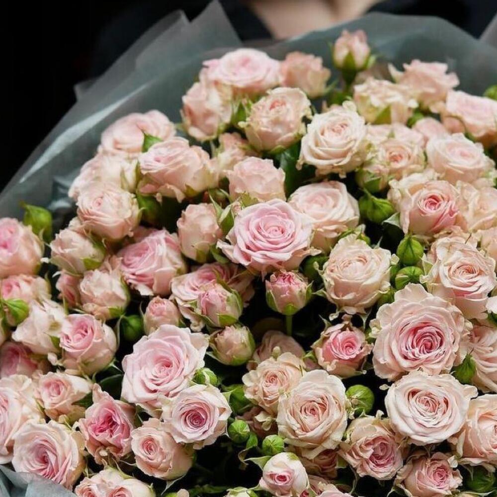 Роза кустовая розовая – 31 шт.Упаковка дизайнерская – 1 шт.Лента атласная – 2 шт.Открыточка с вашими пожеланиями – 1 шт.хорошее настроение – 100 шт.инструкция по уходу за цветами – 1 шт.коробка переноска – 1 шт.Кризал – 1 шт.