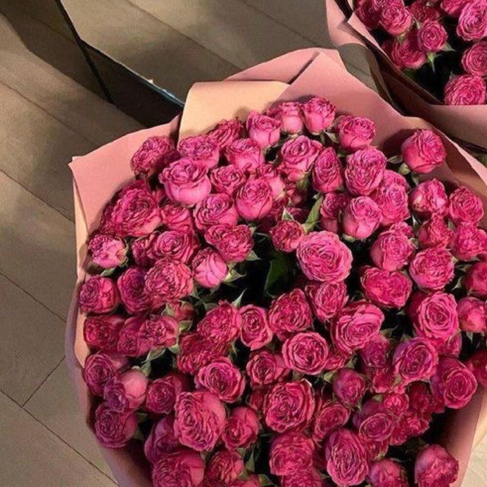 Кустовая роза малиновая – 51 шт.Упаковка дизайнерская – 2 шт.Лента атласная – 2 шт.Открыточка с вашими пожеланиями – 1 шт.хорошее настроение – 100 шт.инструкция по уходу за цветами – 1 шт.коробка переноска – 1 шт.Кризал – 1 шт.