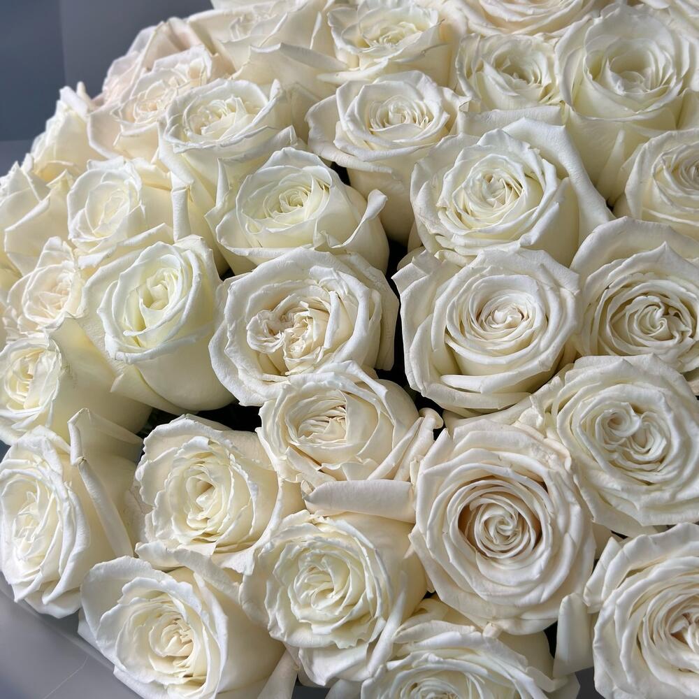 роза пионовидная плая бланка – 49 шт.матовая прозрачная корейская пленка – 3 шт.Лента атласная – 1 шт.
