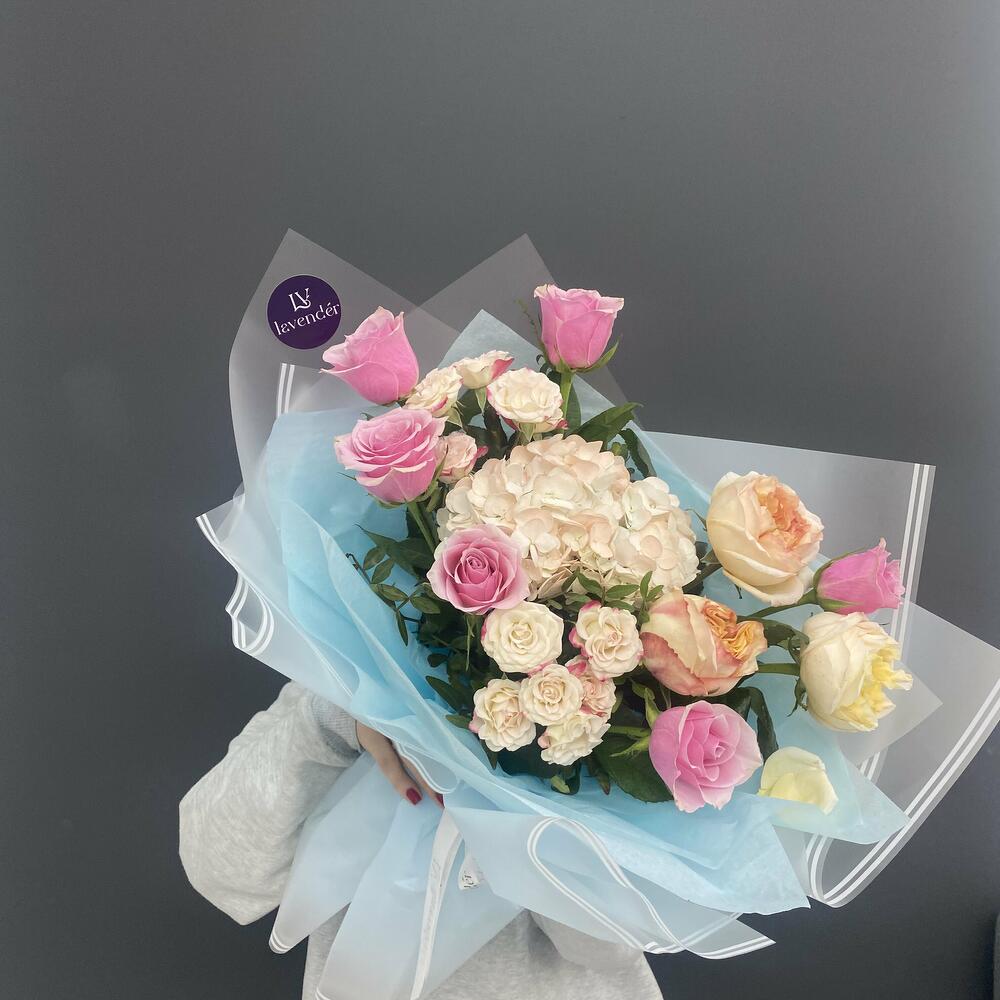 Огромный букет с французской розой, пион кустовой розой и орхидеей