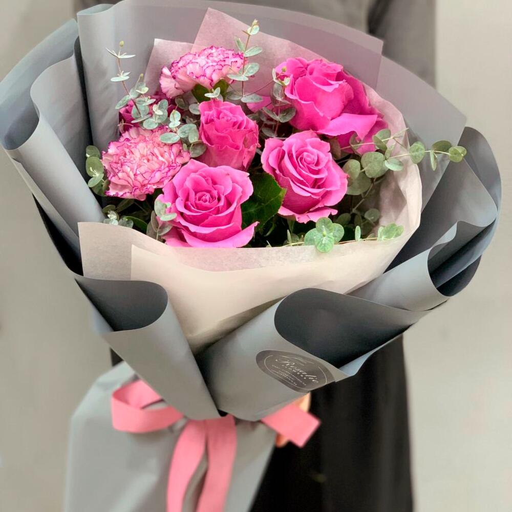Гвоздики, Кустовые розы, Лизиантусы, Пионовидные розы, Розы