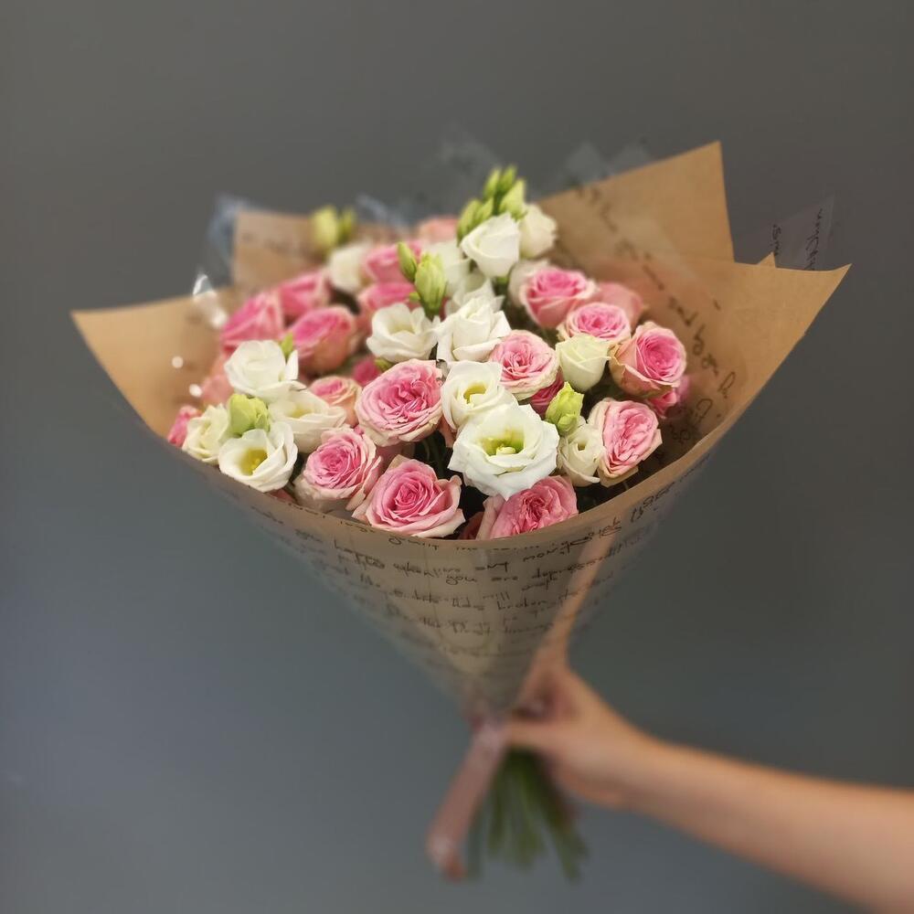 Гвоздики, Кустовые розы, Лизиантусы, Пионовидные розы, Розы