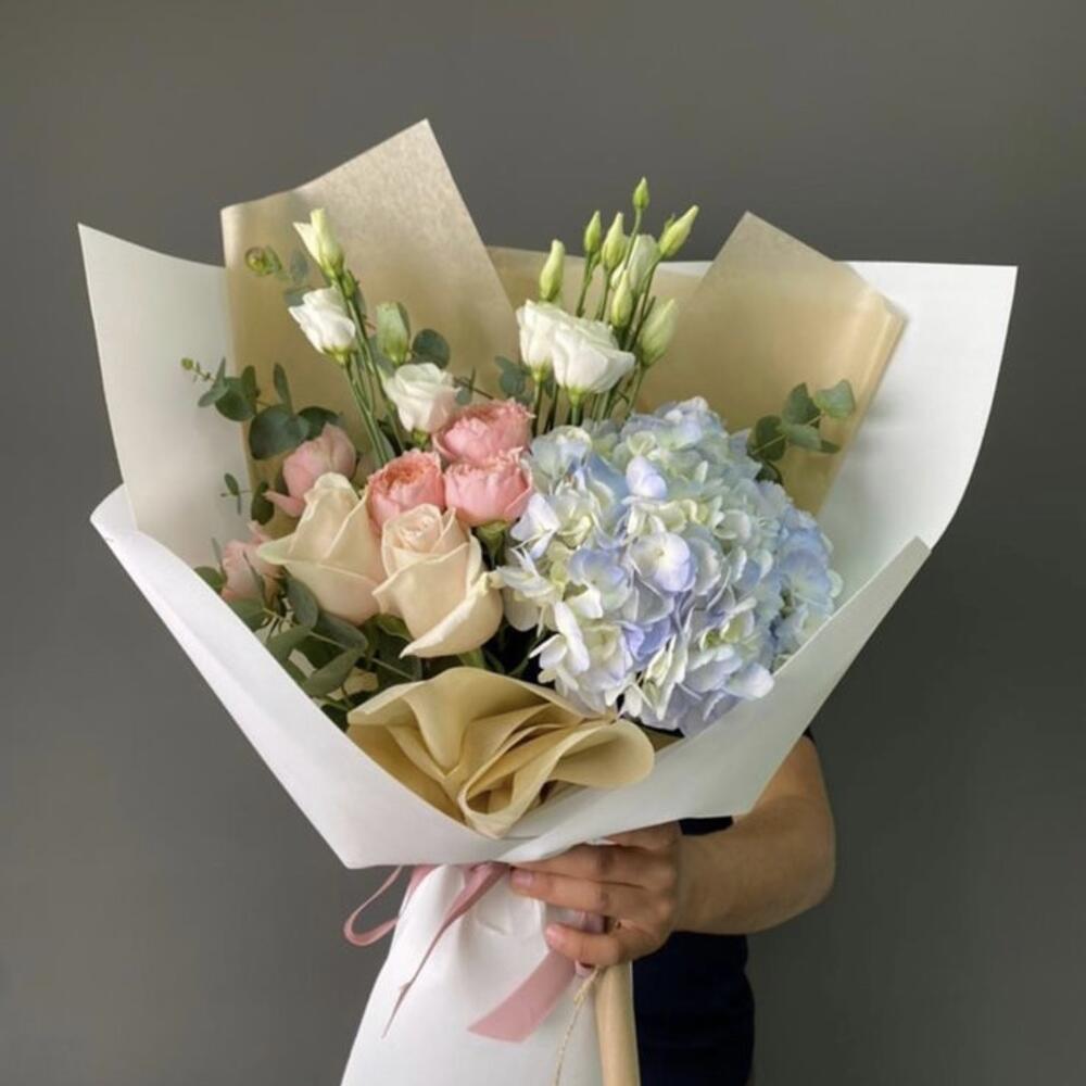 Альстромерии, Кустовые розы, Лизиантусы, Пионовидные розы, Розы, Ромашки