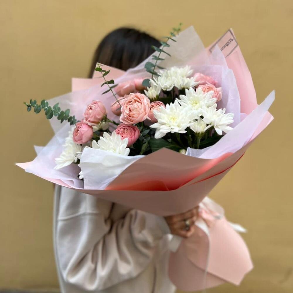 Гвоздики, Кустовые розы, Пионовидные розы, Розы