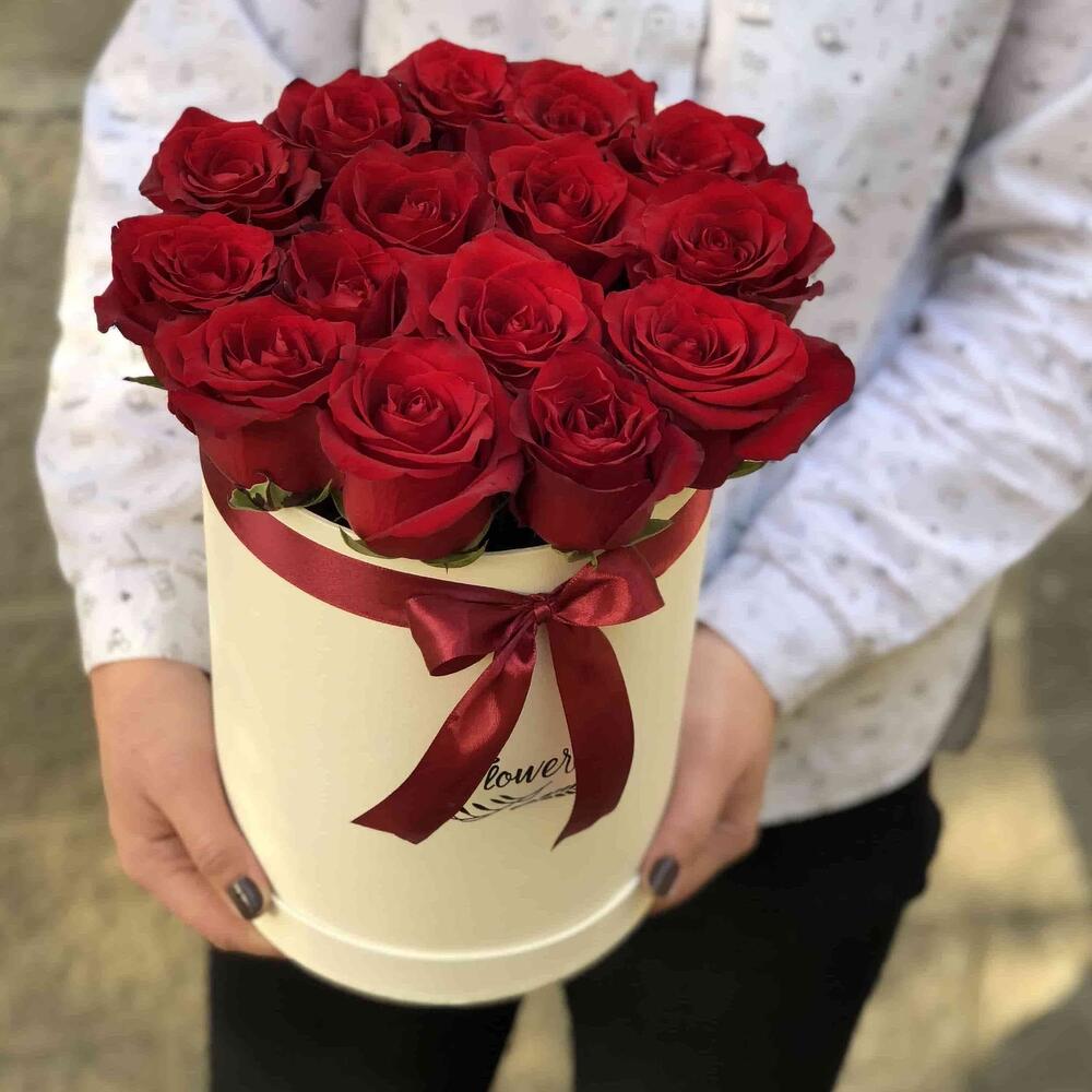 Роза – 15 шт. Шляпная коробка – 1 шт.