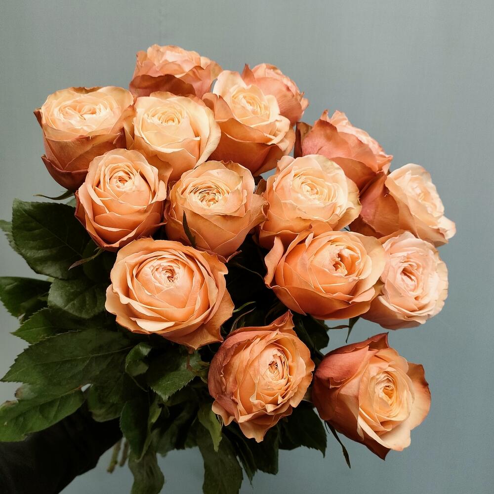 Роза пионовидная кахала – 15 шт.Лента атласная – 1 шт.