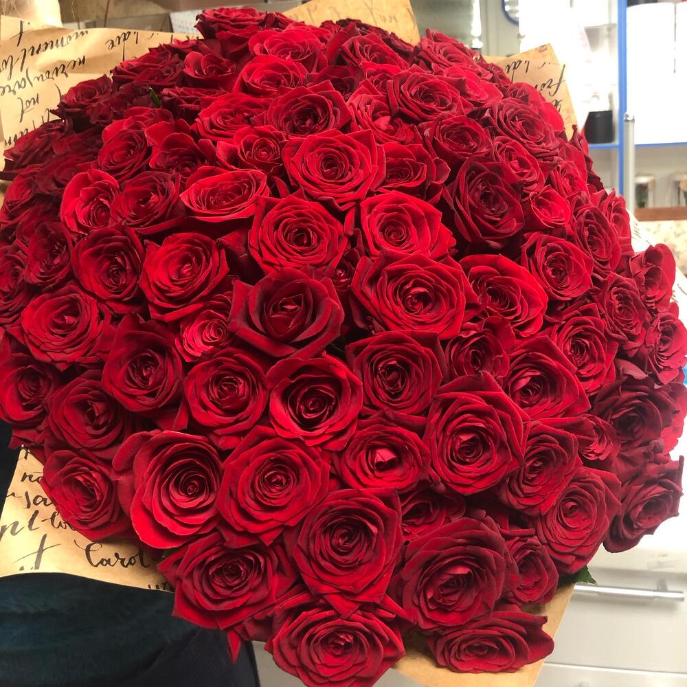 розы эквадор (50 см) “silatoi” – 101 шт.Лента атласная – 1 шт.Упаковка дизайнерская – 2 шт.