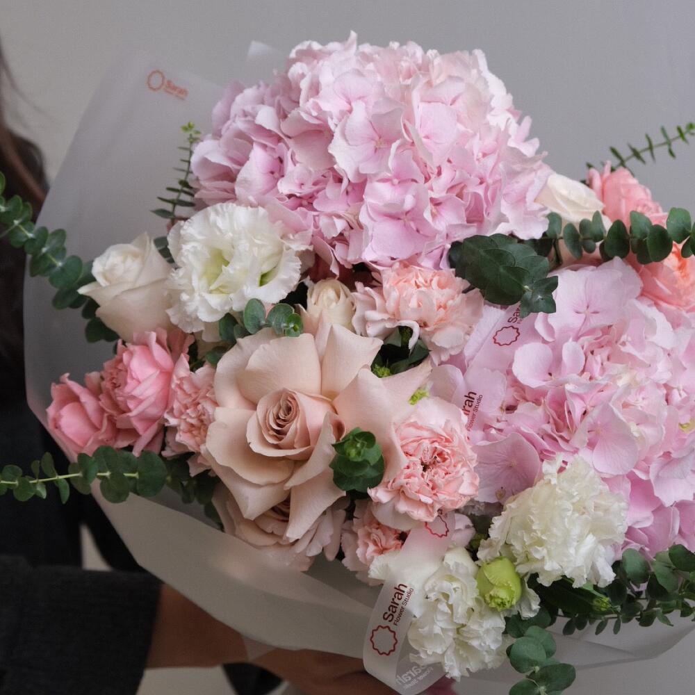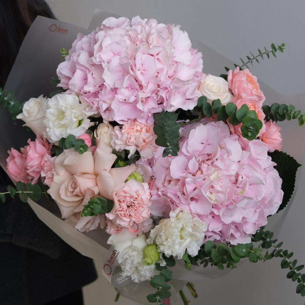 Гвоздики, Кустовые розы, Пионовидные розы, Розы