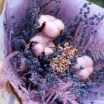 «Лавандовое созвездие» Букет из розы, гвоздики, статица и хлопка