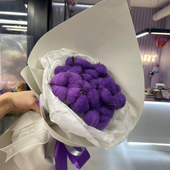 Хлопок – самое лучший подарок, он не завянет, не засохнет и не осыпится! Такой букет будет радовать вас годами)