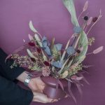 Интерьерная композиция из сухоцветов в розово-сиреневых тонах
