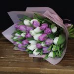 Тюльпан пионовидный – 17 шт.Тюльпан белый – 18 шт.Пленка матовая – 2 шт.Лента атласная – 1 шт.